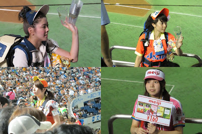 日本球場裡面最有特色的就是這種賣酒或是飲料的工讀生了
